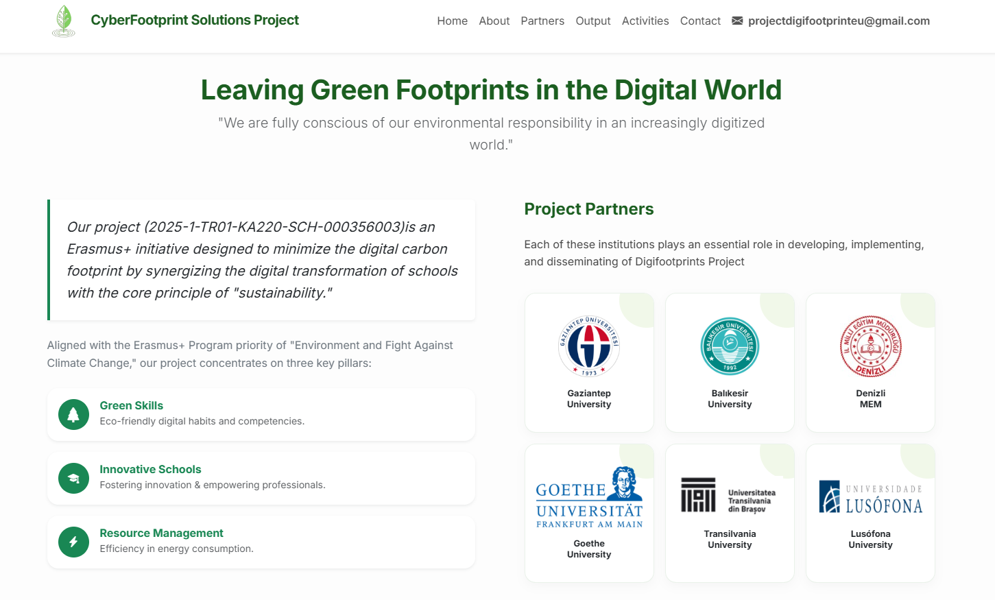 Dijital Dünyada Yeşil Ayak İzleri Bırakmak Projemiz , okulların dijital dönüşümünü “sürdürülebilirlik” temel ilkesiyle bütünleştirerek dijital karbon ayak izini en aza indirmeyi amaçlayan bir Erasmus+ girişimidir.